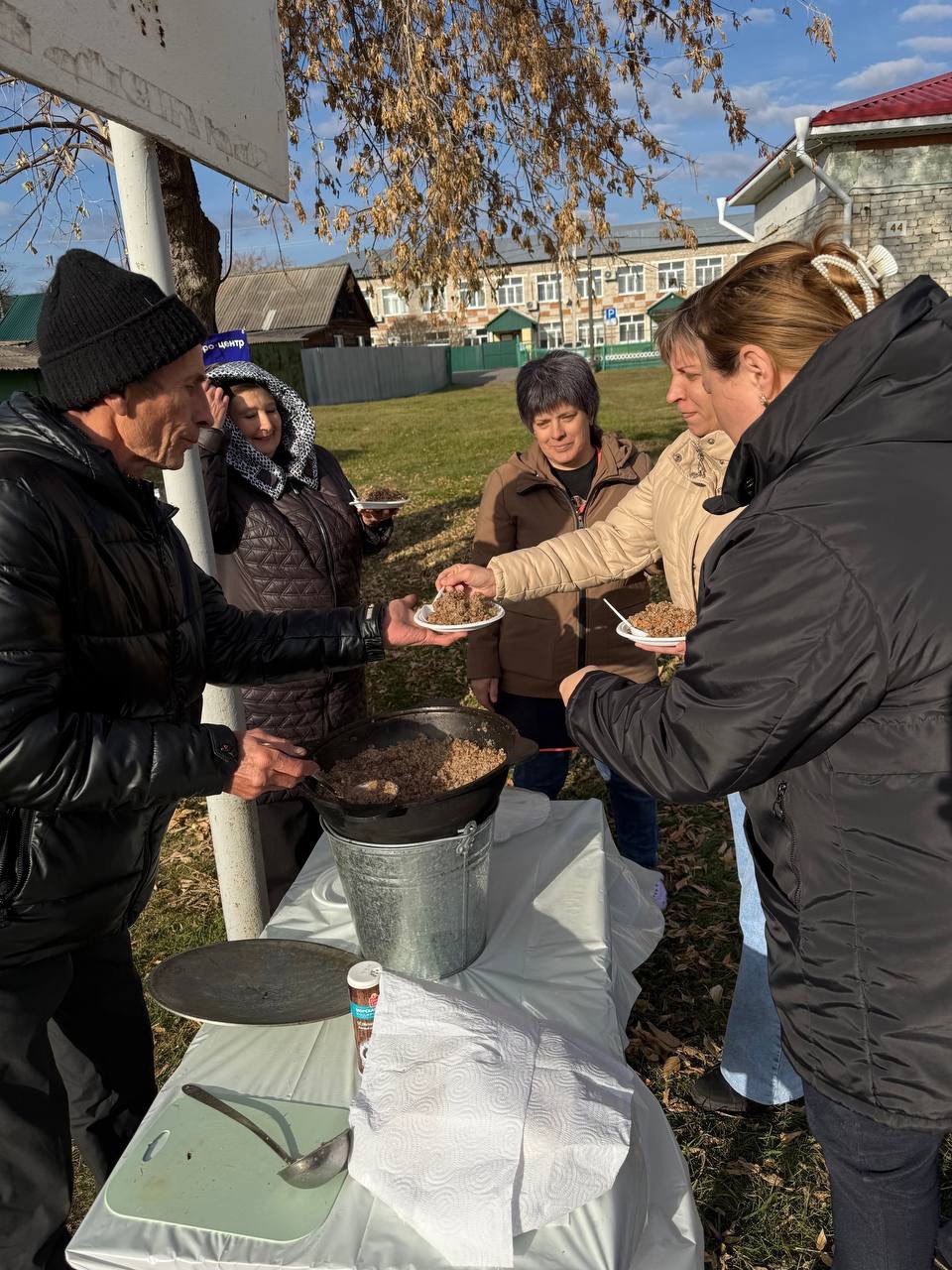 Волонтёры организовали угощение для прохожих: всех желающих приглашали отведать ароматную гречневую кашу «по‑купечески». Одновременно участникам акции предлагали внести свой вклад в копилку штаба «Мы вместе» — для поддержки военнослужащих.