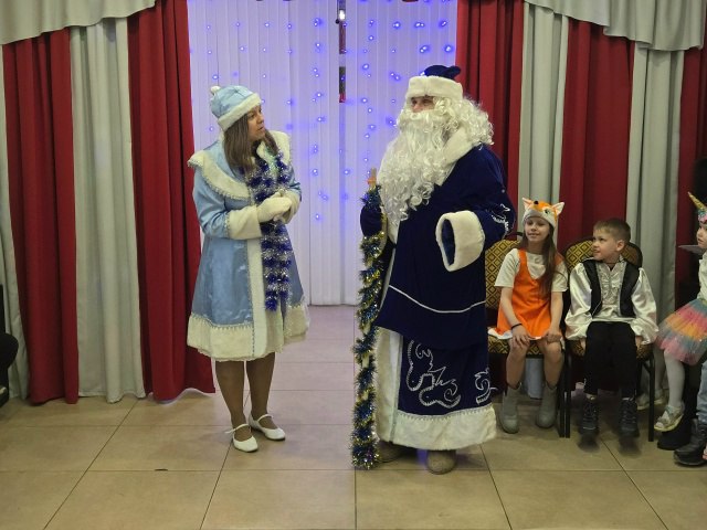 И вот, под бой курантов, в зале появился главный волшебник — Дед Мороз! Он присоединился к всеобщему веселью, водил с детьми хороводы, слушал праздничные стихи и дарил улыбки.